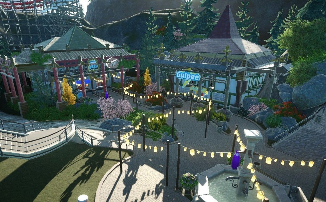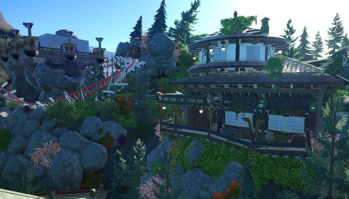 So, ich bin wie manche schon gemerkt haben auch bei Planet Coaster am Start! Als alter RCT2 Veteran ist das natürlich schon eine Hausnummer, aber mittlerweile hab ich mich total an das Bausystem und 3D gewöhnt. Das Spiel find ich unfassbar genial, auch wenn mir immer wieder Kleinigkeiten auffallen die man verbessern könnte...egal. Mein erstes Projekt ist dann natürlich auch direkt was sehr zeitintensives. Meine erste Achterbahn ist natürlich ein RMC. Nach einigen vielen Anpassungen war ich dann auch mit dem Layout (Für meine erste Bahn) sehr zufrieden. Ich hab dann einfach mal mit der Thematisierung angefangen und das hat sich dann immer weiter entwickelt bis zum jetzigen Baustand. Bis jetzt glaube ich knapp 20h Zeit investiert und eine Menge liegt noch vor mir. Projektname ist momentan noch "Himalaya V1", ich hab aber schon eine Idee für einen passenden Namen. Genug geredet, hier ein paar Bildchen: |