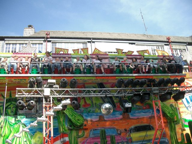 - Schönseifen Autoscooter Cadillac - Music Express - Schönseifen Scheibenwischer Shaker - Kettenkarussell Wellenflug - Mini Autoscooter Rally Master No. 2 - Bonner Break Dance No. 2 - Wendler & Deinert Hip Hop Fly (Yippie ya yeah, Schweinebacke) - zwei Kinderarussells Also für unsere Verhältnisse überdurchschnittlich gutes Line Up. Wäre Nessy noch da wärs glaub ich unschlagbar;) Bin jedenfalls sehr zufrieden, mir reicht auch der Hip Hop Fly alleine schon aus, endlich is er nochmal da! Werd schauen das ich von allem Fotos mache. |