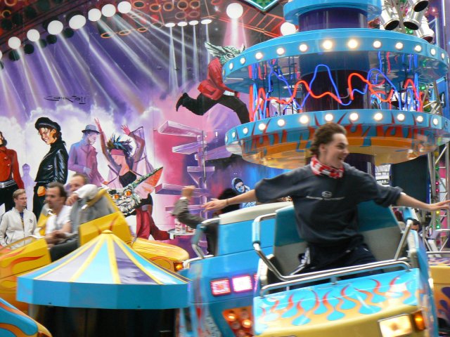 Von Videos her sieht das Ding eher aus wie ne reisende Disco mit Breaker auf der Tanzfläche. So muss ein Fahrgeschäft sein!