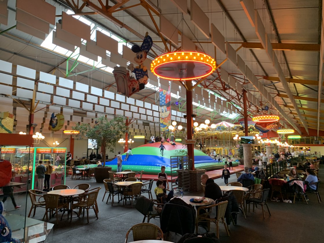 Geplant war daher, für einen schmalen Kurs über Social Deal vergünstigte Tickets zu kaufen, damit die horrenden 12 Euro pro Person nicht anfallen. Leider fand Social Deal mein Passwort nicht genehm, einen neuen Account konnte ich auch nicht erstellen, also musst ich doch in den teuren Apfel beißen und den vollen Eintritt entrichten. Die Kinderstad Heerlen vereint klassische FEC Elemente wie Kletterstrukturen, Trampolin und Co mit doch recht großen Attraktionen, die allesamt Indoor sind. Aber gehen wir mal durch: Nach dem Betreten des Eingangsbereichs Folgen eine bunte Auswahl an Attraktionen: Für Achterbahnnerds ist die Achtbaan ein gefundenes Fresse: Der Reibrad aus der Station mit der Kurve sieht toll aus und ich mag es wie der Motor sich bewegt. youtube.com 7YAUnHNfEFQ Dazu sehen die Reibräder mit Kettenantrieb ebenfalls irgendwie super aus. Doch nicht nur das: Für ein FEC ist die Anlage doch ganz schön groß und macht wohl allen Besuchern Spaß. Da so eine Anlage nur bedingt in die Hallenstruktur passt, musste eine Stütze der Halle umgebaut werden. Auch sonst eine eine ansehnliche Bahn: Interessant auch das Währungssystem im Park: An der Kasse oder am Automaten muss Bargeld oder per Karte die Parkeigene Währung gekauft werden, so kleine Münzen. Mir damit kann in der Gastro und das Parken bezahlt werden. Das Preissystem ist dabei recht simpel: Alles an Essen eine Münze, sprich zwei Euro. Parken auch. Nur 0,5 Liter Getränke kosten zwei Münzen. Essentechniscg gab es Burger, belegte Broodjes, Fritten, Frikandwl und Co, Abzüge in der B-Note gibt’s für das fehlende Kaassoufflé. Wenig überzeugend war der Arcadebereich, der durch fehlende Pinballs (Frevel!) sowie relativ alten Games eher negativ aufgefallen ist. Aber gut, man ist ja auch nicht zum zocken da. Alles in allem kann man dort mit Kids einen guten Tag verbringen und noch zwei Zähler mitnehmen. |