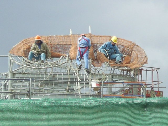 Wenn das Gebilde die Nase wird, dann müssten die das Gerüst aber noch mächtig aufstocken. Überlegt mal wie hoch der restliche Kopf noch gehen müsste...