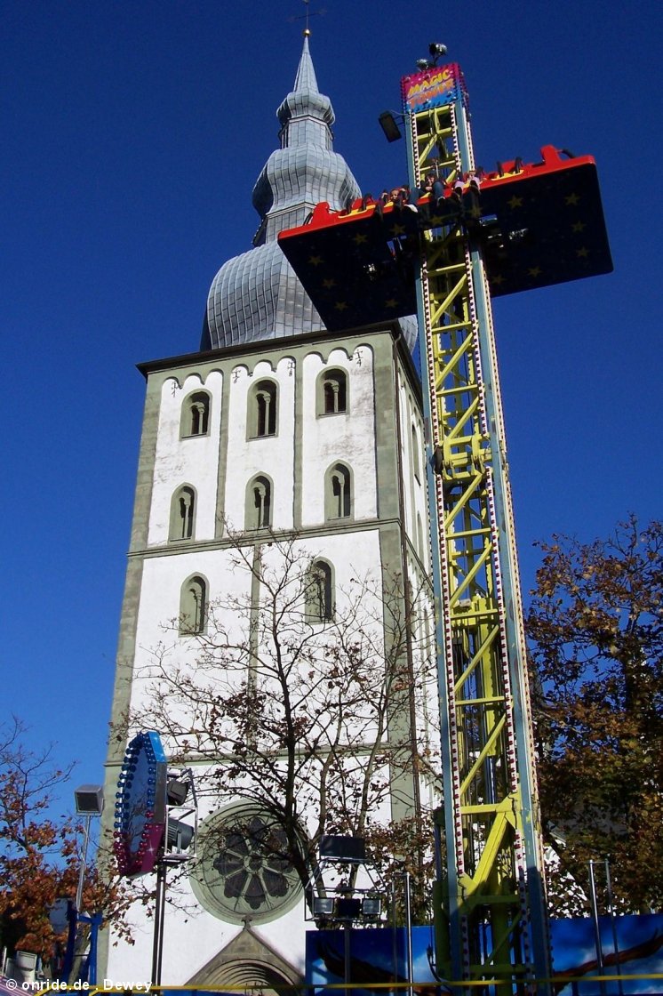 wie hoch ist der turm? sieht auf den fotos nicht so hoch aus. fällt der nur runter, oder wird der wie z.b. bei countdown auch hochgeschossen? | |||