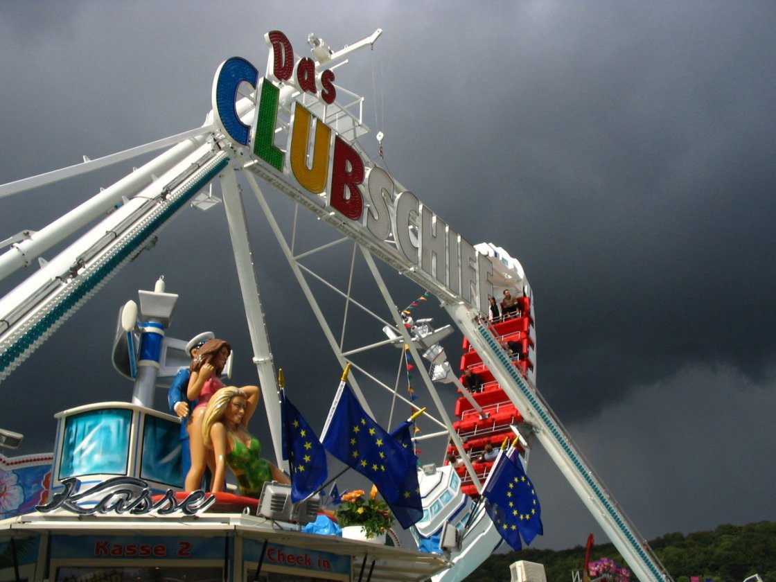 Und wenn Schneider tatsächlich mit dem Teil pünktlich vor den großen Sommerkirmessen kommen sollte, kann Markmann einige gute Plätze vergessen. Markmann ist nämlich bei vielen Volksfesten in die Lücke von Schneiders "Alter Liebe" gerutscht. Jetzt könnte es für den Bonner Schausteller schwierig werden. Aber wie heißt es doch so schön: Konkurrenz belebt das Geschäft! Aber man sollte abwarten und Tee trinken. Denn 2001 wollte auch eine Firma Sonntag mit einem Schiff auf große Fahrt gehen. Obwohl damals in der KPR eine ganze Werbeseite geschaltete wurde, wurde "Sail-Away" schnell zur Luftnummer... | |||