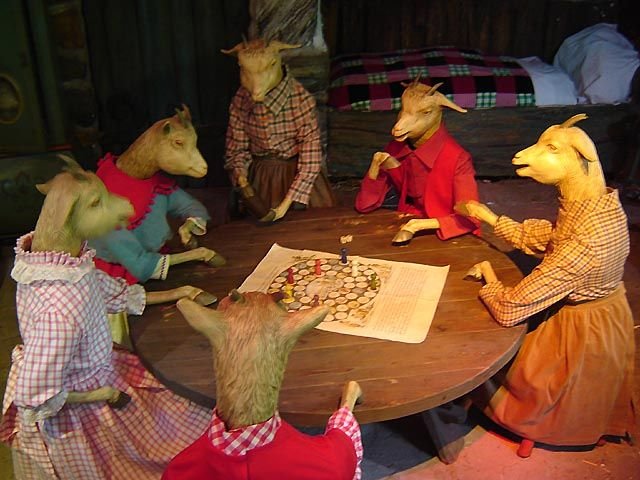 Märchen 8: Der Papagei Jetzt auf zum Papagei... Eigentlich gibt es hier nur wenig zu sehen, aber mehr zu hören... Das Märchen Es war einmal ein König, der ein Tochter hattet, die nicht anders könnte als alte und unbeholfen Leute nach zu bilden und sprechen. Sie hattet schon viel Strafen bekommen, aber das war nicht genug. Jeder hat keine Losung mehr für der Verhaltensweise von das Mädchen... Am einem Tag kam die Prinzessin eine alte Frau entgegen, daß ihr den Weg zum Schloß fragte... Die Prinzessin antwortete nicht, sondern sie imitierte die gekrümmte Rücke und die krackende Stimme von die Frau. Aber jetzt gab es einé Bestrafung... Die Frau war eigentlich ein Fee und sie änderte die Prinzessin in einem Papagei... Sie mußte jetzt immer alle Leute nachsprechen, ob sie es wollte oder nicht... Ein(ige) Bild(er) Der Papagei... Wenn mann ein rotes Licht seht, dann mußt mann sprechen... Und der Papagei wiederholt es denn... Märchen 9: Rapunzel Nach dem Papagei kommt Rapunzel mit der Hexe... Raponsje ist die niederländische Name... Das Märchen Hier sieht mann Rapunzel alleine... Es war einmal ein Ehepaar, dass wünschte sich schon lange ein Kind. In Nachbars Garten wuchsen die schönsten Rapunzeln, aber die Leute durften nicht davon essen, weil der Garten einer Zauberin gehörte. Die Frau hätte so gerne von diesen Rapunzeln gegessen. Weil sie keine bekommen konnte, wurde sie krank. Da beschloss der Mann, ihr welche zu holen. Das erste Mal ging es gut, beim zweiten Mal erwischte ihn die Zauberin. Sie erlaubte ihm zwar, weitere Rapunzeln zu pflücken, dafür musste der Mann versprechen, ihr das erste Kind zu schenken. Gleich nach der Geburt nahm die böse Zauberin das Mädchen mit und gab ihm den Namen Rapunzel. Rapunzel wurde ein sehr schönes Mädchen. Als es zwölf Jahre alt war, sperrte die Zauberin Rapunzel in einen abgelegenen Turm. Wenn die Zauberin das Mädchen besuchen wollte, rief sie: "Rapunzel, Rapunzel, lass dein Haar herunter." Rapunzel wickelte ihr Haar um einen Fensterhaken und liess es hinunter fallen. Mit Hilfe dieser Haare stieg die Zauberin hinauf. Nach ein paar Jahren kam zufällig ein Prinz vorbei und beobachtete dieses Vorgehen. Er fand Rapunzel so schön, dass er sie befreien wollte. In der kommenden Nacht ritt er zum Turm und rief: "Rapunzel, Rapunzel, lass dein Haar herunter." Er stieg an den Haaren hinauf und gelangte so in den Turm. Rapunzel erschrak zuerst gewaltig, da sie die Zauberin erwartet hatte. Der Prinz erklärte ihr aber, dass er sie befreien möchte. Jeden Abend brachte er ihr einen Strang Seide, woraus sie sich eine Leiter flechten sollte. Ein Tag bevor Rapunzel flüchten wollte, hatte die Zauberin immer noch nichts mitbekommen. Unabsichtlich verriet Rapunzel das Geheimnis der bösen Zauberin. Diese brachte Rapunzel in eine Wüstenei. An jenem Abend fand der Prinz nicht Rapunzel, sondern die Zauberin im Turm. Er war so traurig, dass er aus dem Turm sprang und sich beim Sturz beide Augen verletzte. Er irrte blind im Wald umher, bis er nach vielen Jahren Rapunzel wieder fand. Ihre Tränen heilten seine Augen. Er brachte sie in sein Reich, wo sie noch lange glücklich lebten. Einige Bilder Dort ist die Hexe... Sie steigt einfach hinauf der Turm... Eigentlich ist es doch ein einfältiges System... Die Hexe macht nur eine Art Bewegung, aber doch schaut es sich ziemlich realistisch an... Märchen 10: Die kleine Meeresjungfrau Dies ist ein sehr bekanntes Märchen von Hans Christian Andersen, der jetzt ein Hauptfigur in der Eftelingshow ist... Das Märchen Weil alle Versionen zu viel Text einhalten, habe ich hier ein Hyperlink zum Märchen in das Gutenberg-projekt: gutenberg.spiegel.de seejungf.htm Ein(ige) Bild(er) Mein Gedanke: Anton Pieck hat auch etwas entwurfen für alle Vater und andere Männer (die gerne nackte Frauen sehen) Märchen 11: Der Fliegende Drache Dieser Drache werdet auch "Drache Leichtpikiert" genannt... Das Märchen Eigentlich gibt es kein Märchen hinter diesen Figur, aber mann sagt daß dieser Drache der Schatzmeister von Efteling ist... Einige Bilder Ist er nicht suß Der Drache und sein Schatz... Der Schatz ganz nah... Hmmm, das ist eine schöne Krone... Ich nimm es mit... Ich glaube daß dieser Drache nicht dieselbe Gedanke hat... Er ist so böse daß ich schnell gehe... Märchen 12: Der Wolf und die Sieben Geißlein Nicht Midas der Wolf und die drei Sweinchen, sonder nur ein Wolf und Sieben Geißlein... Das Märchen Als die Geißenmutter zum Einkaufen ging, sagte sie ihren sieben Kindern, für niemanden die Tür ihres Häuschens zu öffnen. Doch der bose Wolf betrog die sieben Geißlein mit der sanften Stimme und den weißen Pfoten der Geißenmutter. So öffneten die sieben doch die Tür und der böse Wolf verschluckte sie mit Haut und Haaren. Nur das jüngste blieb verschont, denn es versteckte sich flink in der großen Standuhr. Untröstlich machten Mutter und Kind sich auf der Suche nach dem bösen Wolf... Einige Bilder Die Mutter ist noch nicht weit weg... In der Schlafzimmer von der Geißlein gibt es sehr viele Mäuser... Sechs Geißlein... Aber auch Nummer sieben gibt es hier auf diesem Bild... Nummer sieben, wie gesagt, hat sich versteckt im Standuhr... Wenn mann gut guckt, sieht ein bisschen von dem böse Wolf... Yep!!! Dort ist er... Versessen auf die Geißlein guckt er durch das Fenster... Der Wolf an der Tür... Nächste Märchen: - Hansl und Gretl - Frau Holle - Kleines Botschaft - Gaststätte der Ersteling Andere Teile lesen??? Teil 1: Allgemeine Sachen und Dornröschen Teil 2: Zwergendorf (Goldene Gipfel) und die Sechs Diener Teil 3: Kugelrunder Gijs, Rotkäppchen, Die Tanzende Schuhe und der Koboldenkönig |