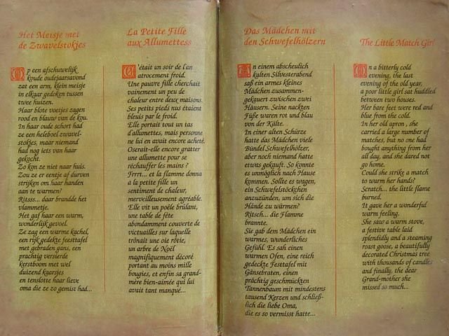 Das ist nicht ganz gut zu sehen, aber es scheint zu sein daß wenn das Mädchen das dritter Schwefelholz angezundet hat, es seine Großmutter sieht und dann sterbt... Sie fliegt denn zum Großmutter... Ich glaube daß H.C. Andersen richtig ist, weil der Efteling 2005 such das Jahr von Andersen genannt hattet... |