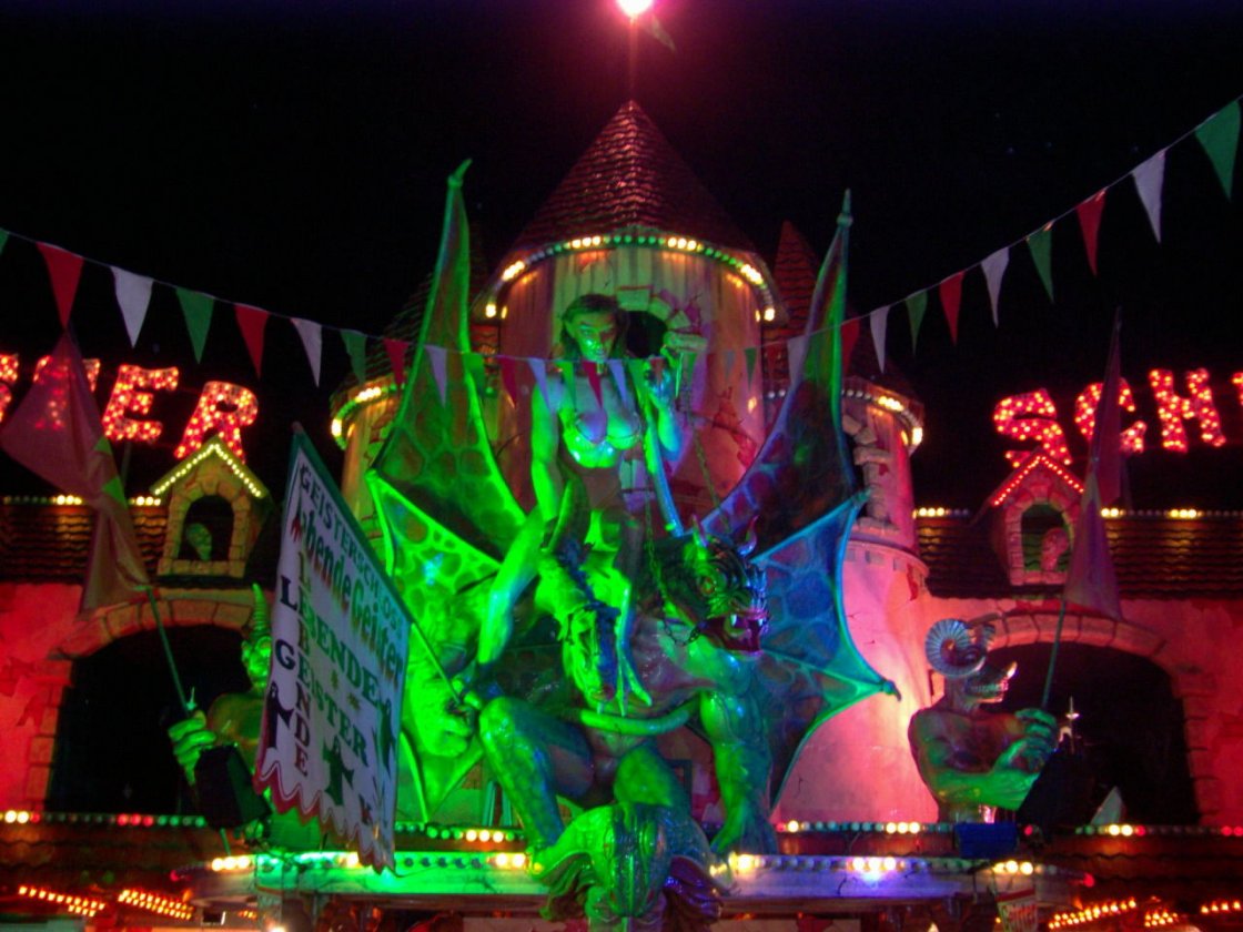 Standorte 2017 Würzburg - Kilianivolksfest Standorte 2010 Passau - Maidult Bremen - Freimarkt Standorte 2009 Augsburg - Osterplärrer Pforzheim Düren - Annakirmes Standorte 2008 München - Frühlingsfest Standorte 2007 Regensburg - Maidult Soest - Allerheiligenkirmes 07.11. - 11.11. Standorte 2006 Augsburg - Frühjahrsplärrer Schweinfurt - Volksfest Straubing - Gäubodenfest München - Oktoberfest Bremen - Freimarkt Standorte 2005 Fulda Standorte 1996 Landshut - Frühjahrsdult Hier mal ein paar Bilder, der von außen gut aussehenden Geisterbahn "Geisterschloss" von Judenhofer-Kunz aus München, die aber meiner Meinung nach im Inneren nicht so gut ist. Auch diese Geisterbahn wirbt mit lebenden Geistern im Inneren und Animation auf dem Balkon. In Fulda: In Nürnberg: In München: |