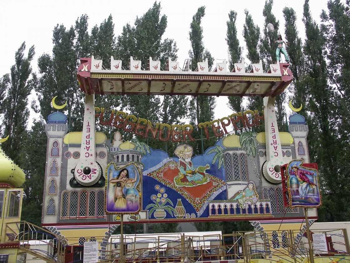 Seit 1990 ist der Fliegende Teppich im Besitz der Familie Meyer aus Halle. Zuvor war er in den Niederlanden auf Reise. Er wurde 1983 von der Fa. Fähtz als letztes Fahrgeschäft gebaut. |