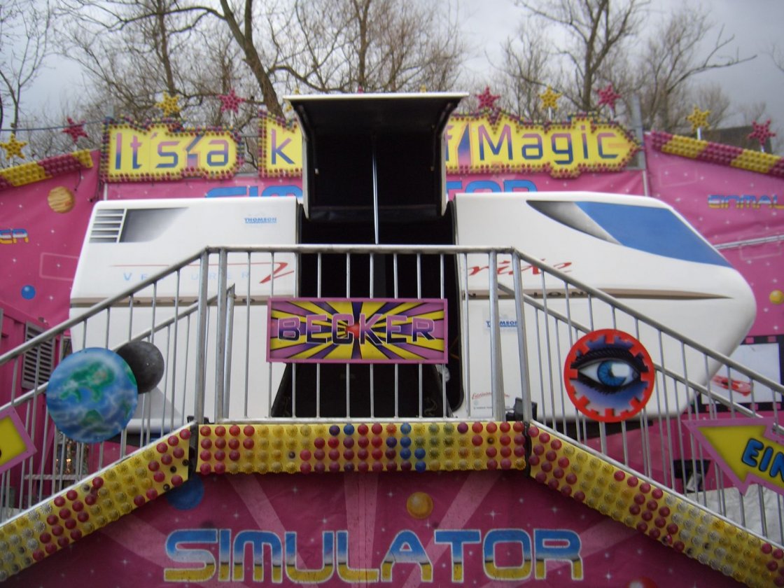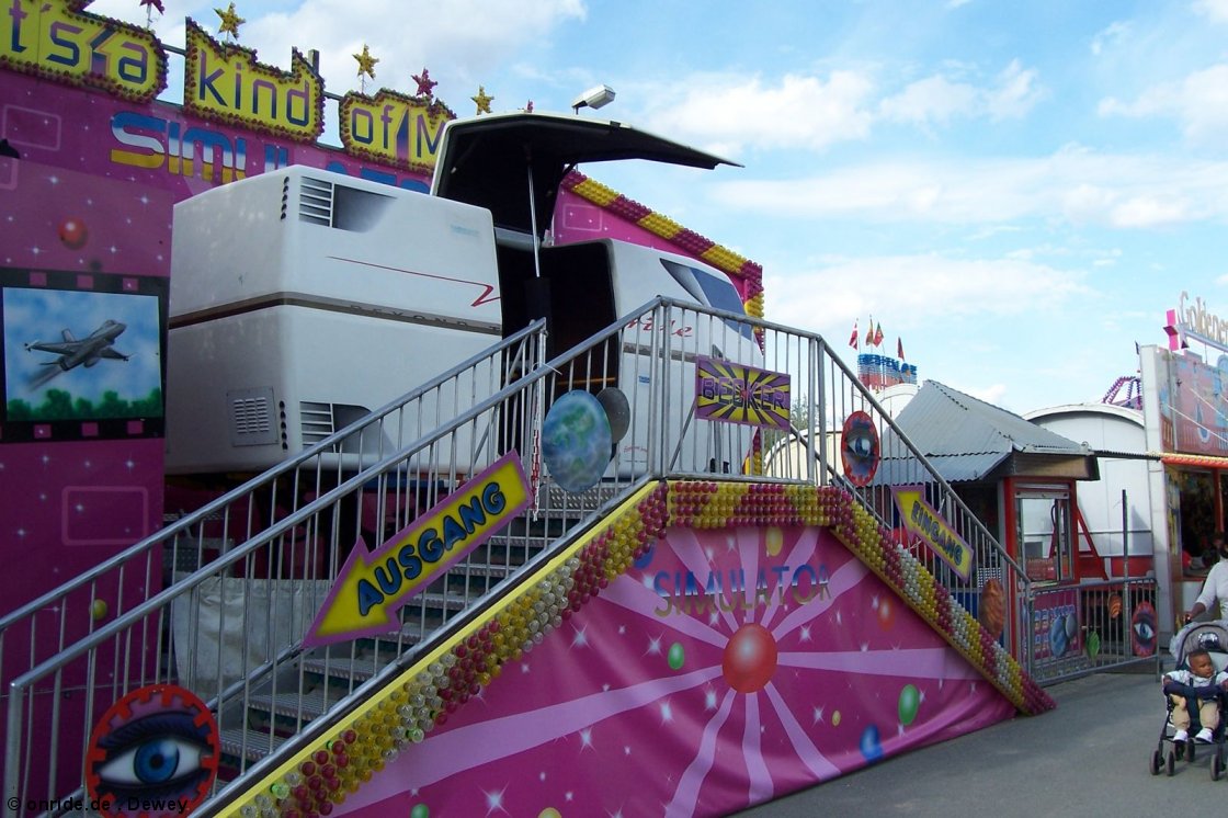 Hersteller: Thomson (GB) Typ: Simulator Premiere: 1997 Betreiber: Becker (Kaiserlautern?) Ride-Index: ride-index.de Reiseland: Deutschland Standorte 2013 Rüsselsheim - Rüsselsheimer Kerb Standorte 2012 Bielefeld - Frühjahrskirmes Baunatal - Stadtfest Standorte 2009 Geldern - Pfingstkirmes Standorte 2008 Rüsselsheim Viernheimer Kerwe Standorte 2007 Bad Homburg Standorte 2006 Gelnhausen - Barbarossamerkt Standorte 2005 Gevelsberg Auf dem Barbarossamarkt 2006: |
