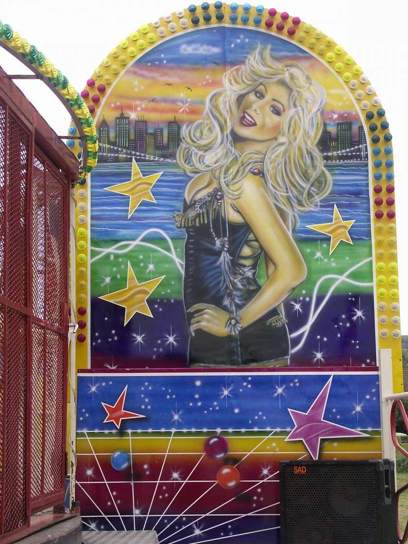 Hersteller: Klaus (D), Umbau durch DeBoer (NL) Typ: Round Up Baujahr: 1958 Besitzer: Potratz by Kaschi GbR (28816 Stuhr-Weyhe (D)) ab 02.2012 ehemaliger Betreiber: Möckel (Zürich (CH)) 1958 bis 1965 ehemaliger Betreiber: Beuermann (Berlin (D)) 1965 bis 1967 ehemaliger Betreiber: Isken, A. (Schwerte (D)) 1967 bis 1989 ehemaliger Betreiber: Aufermann, H. J. (Witten (D)) 1989 bis 1995 ehemaliger Betreiber: Wiemer, P. (Dippoldiswalde (D)) 1995 bis 2000 ehemaliger Betreiber: Dölle, J. (Herzogenaurach (D)) 2000 bis 2001 ehemaliger Betreiber: Dobler, F. u. E. (Nürnberg (D)) 2001 bis 2006 ehemaliger Betreiber: Nickel (55218 Ingelheim (D)) 2006 bis 2011 ehemaliger Name: Astro Liner ehemaliger Name: Sunny Beach Webseite: schausteller-potratz-by-kaschi.de Standorte 2012 Wilhelmshaven - Frühlingsfest Standorte 2009 Eltville-Erbach - Erdbeerfest Standorte 2007 Rüdesheim/Nahe - Kirmes Mai Groß Rohrheim 25.05. - 28.05. Nierstein - Winzerfest Standorte 2006 Wiesbaden - Frühlingsfest Schierstein - Hafenfest Fotografiert auf dem Wiesbadener Frühlingsfest |