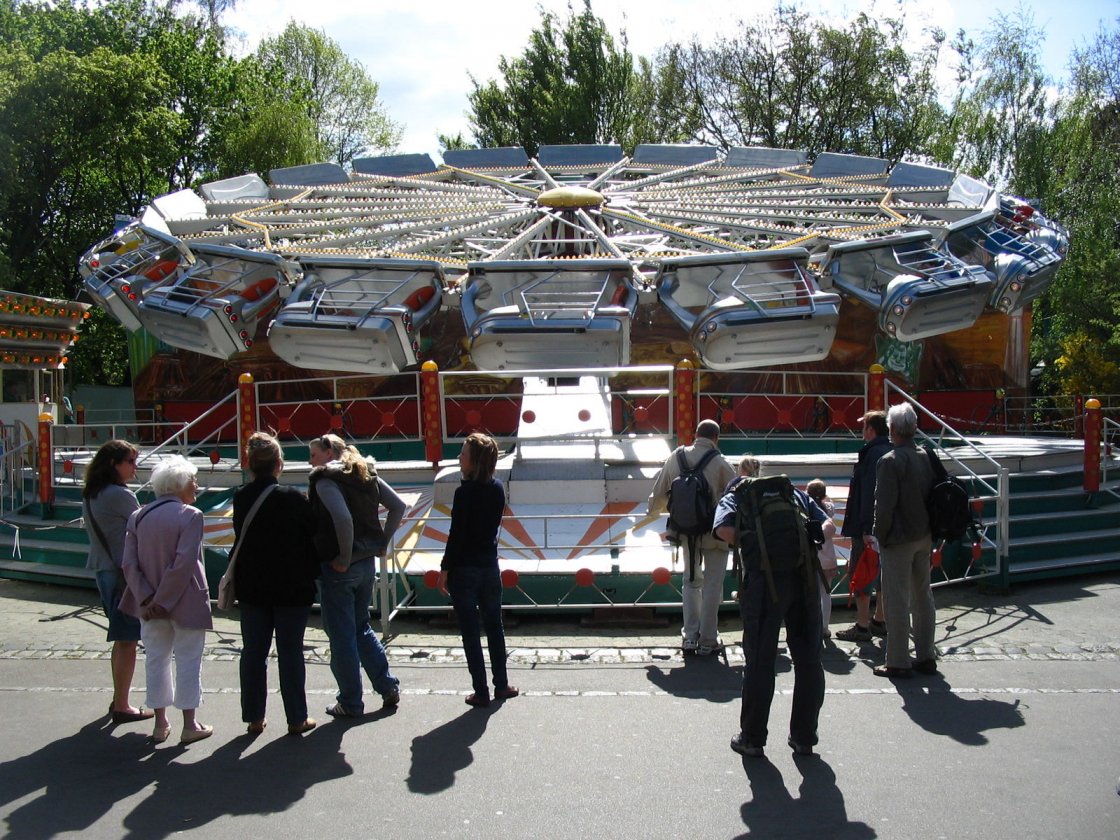 Nach der Hafenrundfahrt ging es zurück zum Hauptbahnhof, wo wir mit der C3 (S-Bahn) Richtung Klampenborg losfuhren. Die Fahrt dauert ca. 20 Minuten, und der Zug endet dann auch in Klampenborg. Im Zug gab es 'nen dicken Kampfhund zu bewundern. Der Zug fährt alle zwanzig Minuten. Hin Richtung Klampenborg und zurück Richtung Ballerup. In Klampenborg angekommen, gilt es dann einen kurzen Fussweg von ca. 10 Minuten einzuschlagen. Bakken liegt in einem Naherholungsgebiet mitten im Wald. Das erste, was wir von Bakken sahen, war der Intamin-Mine-Train Ulven. Der First Drop führt entlang eines Maschendrahtzaunes in einen kleinen Tunnel. Durch ein Tor betritt man das Parkgelände, es gibt jedoch auch weitere Zugänge zum Areal. Nach dem Zugang sieht man zur rechten Seite Spielbuden, das künstliche Massiv des Mine Train, geradeaus eine Gokartbahn, links ein Zirkusgebäude. Im gleichen Bereich findet man die Information, wo man Tourbänder (Wristbands) kaufen kann. Für jeden von uns kostet das Bändchen mit Computercode 199 DKR, was ca. 26 Euro bedeutet. Mit diesem Computerstreifen kann man dann jede Attraktion bis zu zehn Mal besuchen. Einfach per Scanner wird der Besuch vom Ride Op oder im Kassenhaus erfasst und durch Piepsignal bestätigt. Unser Rundgang beginnt bei Ulven - dem besagten Intamin Mine-Train. Grob gesagt beschreibt das Gelände einen Rundlauf, folgt man den Weg vom Eingang, den wir genommen haben, zum hinteren Parkareal, so findet man nach Ulven ein Kinderfahrgeschäft, ein Ausflugsrestaurant und eine große Live-Bühne auf der rechten Seite. und auf der linken Seite Imbissbuden und Spielgeschäfte. Im Anschluß daran kommen wir zum Cinema 5D, wofür die 5 bei diesem 4D-Kino steht, ist mir noch nicht ganz gewahr geworden. Vielleicht weiss jemand Rat? Ist wohl die Neuheit 2006 im Park. Trotz schönem Sonnenschein, haben wir uns den Pandadroom-Film angesehen, der hier in einer etwas abgewandelten Form aber mit den gleichen drei Sequenzen gezeigt wird. Am Wasserrondell Dillen vorbei geht es dann direkt in die Geisterbahn im Park - Name so in Richtung Spukschloß auf Dänisch. Nächster Stop das Schwarzkopf Monster3 Polyp. Rasante Fahrten mit Abwechslung in den Beschleunigungen und Eurodancefloorbeschallung aus den 90ern. Kult! Die Schiffschaukel (oder besser gesagt Drachenschaukel) lassen wir rechts von uns links liegen und erreichen schon das Ende des Parkareals. Nach dem Wendepunkt folgt als erster Stop die Zierer-Achterbahn Racing. Eine Runde gedreht und gecountet - that's it. Schön die Kasse noch im Originaldekor. Auf der linken Seiten wartet dann schon der Double Shot TårnGyset von S&S. Eine wahnsinnige Spaßmaschine mit toller Airtime. Double Shot - Double the Fun. Auf Nachfrage der OP-Frau gibt's eine Zugabe mit gleichem Fahrprogramm. Daneben Kinderturm von Moser Rides Nach dem Turm kommt man automatisch in eine Spielhalle inklusive Simulator Die Enterprise zur rechten lassen wir ebenfalls erst einmal links liegen... ...und starten durch zum Funhouse. Sehr schön thematisiert und gut gefüllt mit Klabautermann- und Seemannsgarn-Optik. Am Ende wartet ganz klassisch eine Luftdüse, die den verlassenden Besuchern noch mal die Röcke, Haare und T-Shirts liften lässt. Ein Ride-OP scheint alleine für diese Aufgabe abgestellt zu sein. Direkt im Anschluss wartet der Moser-Rides Burner Extreme auf uns. Vom Typ ein Speed Flip. Na, ja. Der Burner war es nicht gerade. Interessante Überkopfschaukelei, aber unbequeme Bügel. Einige Bügel waren auch mit Klebeband für die Benutzung gesperrt. Dann kam als nächstes die Eisdiele Monaco (siehe Extrathread). Zuvor aber noch eine Schaukelrunde auf dem Afterburner Fire Ball. Eine Runde reicht auch, denn der Bügel will sich nicht unbedingt schmiegsam an meinen schlanken Körper anpassen. Es knarrt auch arg, da es keine Musikbeschallung gibt. Der Zug bei dem Geschäft kommt mir auch extremer als bei den von mir getesteten deutschen Anlagen vor. Die Fahrt besteht erst aus zahlreichen Schwingungen bis zum Maximum, dann Abbremsen und dann erneutes Schwingen nun mit drehendem Fahrgastträger. Interessant die Chipkasse / Fahrstand - die stammt noch von Hersteller Huss. Einst (von ? bis ?) drehte wohl ein Huss-Rainbow hier seine Runden. Ob es danach weitere andere Geschäfte gab, ist mir nicht bekannt. Die Info über den Huss-Rainbow stammt von einem Besuch im Infobüro des Parks. Dort gab es in dänischer Sprache ein Buch über die Geschichte des Parks, wo man ein Foto von jenem Rainbow sehen konnte. Der Rainbow stand wohl von 1983 bis 1992 in Bakken. Was war danach vor dem Afterburner zu finden? Die Kasse sieht nach Top Spin oder Flipper aus. Mit dem Eis bewaffnet ging es dann im Rundlauf weiter. Vorbei am Autoskooter, Teetassen,... ...Oldtimerbahn hin zur Marienkäferbahn von Zierer. Der vorletzte Count auf unserem Trip. Nach vier Runden gibt es auf dem Lifthill eine WinkeWinke-Stop, wo alle Fahrenden winken sollen. Sieht bei uns etwas blöde aus, aber egal - wenn schon Count dann richtig. Nach dem Marienkäfer-Coaster ging es dann zur Hauptattraktion des Parks - die alte Holzachterbahn Rutschebanen von 1932 - Hammergeil! Im Anschluß noch vorbei am Samba Tower und Schwanen-Skypedalo hin zur urigen Wildwasserbahn. Nach der Fahrt landen wir wieder im Eingangsbereich, und eine zweite Runde durch den Park beginnt. Das Wasserrondell geht nach Twin kaputt, die Enterprise nehmen wir mit und zum Schluss gibt es noch mal Fast Food. Der interaktive Darkride Safari ist leider nicht in Betrieb. Vielleicht beim nächsten Mal? Gegen 19 Uhr verlassen wir Bakken und fahren zurück nach Kopenhagen. Mehr über die Geschichte des ältesten Amusement-Parks der Welt [url=http://www.bakken.dk/default.asp?nodeid={D3A0A01E-44AF-444F-91BF-CE9146CE8572}&treeid= {390AAA23-54A5-4525-A698-2256A2FBF01A}&pageid=383]auf Englisch auf der offiziellen Webseite[/url]. |