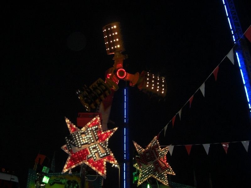 Hersteller: ? Typ: Skycoaster, transportabel Baujahr: ? Betreiber: Traber (Selfkant) ehemaliger Betreiber: ? Webseite: traber-gbr.de Standorte 2007 Duisburg-Ruhrort - Hafenfest Duisburg-Beeck - Beecker Kirmes Frankfurt - Herbstdippemess Gütersloh - Michaeliskirmes Standorte 2006 Gummersbach Hannover Göttingen Herne-Crange - Cranger Kirmes Remscheid-Lennep Frankfurt - Herbstdippemess Weitere Plätze in Arbeit! Seit diesem Jahr ist die Anlage nun auch in Deutschland auf der Reise. Von vielen Fans wurden, wie immer bei Anlagen dieser Machart, Stimmen laut, dass "sowas auf einer Kirmes nix zu suchen hat". Dem kann ich so nicht zustimmen. Insbesondere Nachts, wenn die Masten blau beleuchtet werden, wirkt die Anlage zwar schlicht, aber nicht schlecht und vergleichsweise besser als BungeeKugeln und Co. Die Zeiten von massiven Fahrgeschäften ist mittlerweile leider vorbei -im Trend sind Anlagen, die dem "Höher-Schneller-Weiter"-Prinzip folgen (und damit habe zumindest ich kein Problem, solange solche Anlagen die Menschen zu den Veranstaltungen ziehen und damit dann schlussendlich auch andere Beschicker der Veranstaltung davon profitieren). Dazu gehört auch Mach1. Selten war ich vor einer Fahrt so aufgeregt und nach einer Fahrt so begeistert. An sich ist die Fahrt bekannt von den Skycoastern aus Freizeitparks. Für alle, die sowas noch nicht kennen, eine kurze Beschreibung: Nachdem man sich, von der (übrigens sehr netten!) Crew in eine Weste eingepackt, die man auch vom Drachenfliegen kennt, auf dem Hubwagen eingefunden hat und an der Seilkonstruktion angegurtet wurde, wird man rückwärts in eine Höhe von ca. 45m gezogen. Oben angekommen geht es dann nach dem Auslösen gleich wieder im freien Fall abwärts, die maximale Geschwindikgkeit beträgt dabei bis zu 120km/h. Vergleichbar ist das mit einer riesigen Schaukel. Solltet ihr die Anlage also in diesem Jahr noch sehen solltet ihr sie unbedingt testen, es lohnt sich. Und noch ein paar Bilder aus Gummersbach. In Hannover habe ich leider keine mehr gemacht. ![]() Quelle: people.freenet.de Mach1_1.jpg ![]() Quelle: people.freenet.de Mach1_2.jpg ![]() Quelle: people.freenet.de Mach1_3.jpg ![]() Quelle: people.freenet.de Mach1_4.jpg ![]() Quelle: people.freenet.de Mach1_5.jpg ![]() Quelle: people.freenet.de Mach1_6.jpg ![]() Quelle: people.freenet.de Mach1_7.jpg ![]() Quelle: people.freenet.de Mach1_8.jpg ![]() Quelle: people.freenet.de Mach1_9.jpg |
