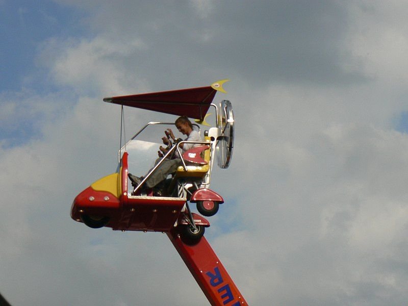 Hersteller. SBF Visa Typ: Sky Glider Baujahr: 2006 Betreiber: Renz, Nicola u. Hauck, Cynthia (Stuttgart u. Homberg (D)) ab 2014 ehemaliger Betreiber: Prumbaum, Stephan (Köln-Porz (D)) 2006-2013 Standorte 2012 Herne-Crange - Cranger Kirmes Bonn - Pützchens Markt Standorte 2010 Krefeld - Sprödentalkirmes Erkelenz - Lambertusmarkt Standorte 2009 Aachen - Frühjahrsbend Herne-Crange - Cranger Kirmes Bonn-Beuel - Pützchens Markt Standorte 2007 Düsseldorf - Größte Kirmes am Rhein Lindlar Moers Haan - Haaner Kirmes Standorte 2006 Andernach - Altstadtkirmes Nach der Ausführung für den Panorama Park erhält nun auch ein deutscher Schausteller so ein Geschäft für die Reise. Wie bei den Looping-Schaukel muss der Fahrgast hier selbst durch Muskelkraft das Gefährt in Bewegung versetzen. |