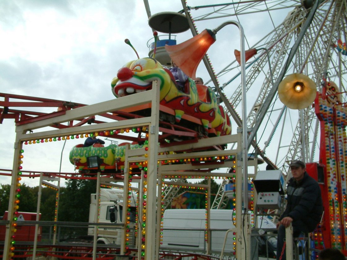 Hersteller: Pinfari (I) Typ: Familienachterbahn Premiere: ? Betreiber: Ordelman (Apeldoorn (NL)) ehemaliger Betreiber: Buwalda (Leuwarden? (NL)) ehemaliger Name: Happy Family Coaster Reiseland: Niederlande Standorte 2012 Amsterdam Westerpark (NL) Standorte 2010 Haarlem-Zaanenlaan (NL) Standorte 2009 Venlo-Blerick (NL) Roermond (NL) Standorte 2008 Geleen (NL) Standorte 2007 Venlo-Blerick (NL) Standorte 2006 Tilburg (NL) Tilburg 2006 Aktuelle Fotos aus Venlo: Und das ist ein heftiger Headchopper...wer aufrecht sitzt, lernt die Lichtleisten kennen! |