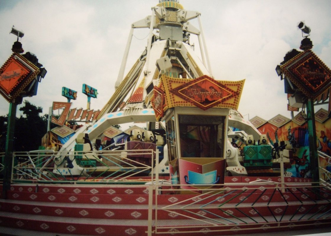 Jumping war meiner Meinung nach das beste Hochfahrgeschäft. Die Fahrt, die Lichteffekte, die Rückwandbemalung,... einfach alles, außer die Technik, war perfekt. Genauso perfekt wie das Hof-Freu-Haus. Besonders Nachts war der Jumping ein echter Hingucker. | |||