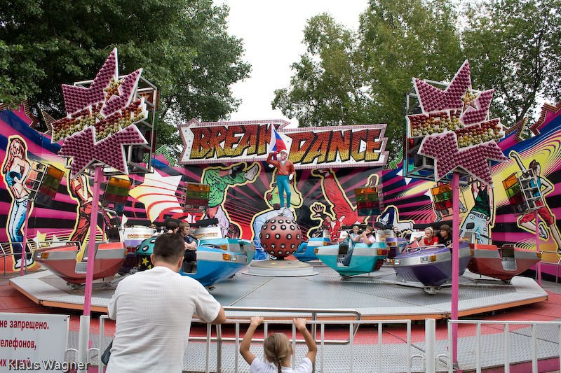 Hersteller: Huss (D) Typ: Break Dance No. 1 Baujahr: ? Serialnr.: 53 464 oder 53 465? Betreiber: Gorki Park (Moskau (RUS)) ab 1995 ehemaliger Betreiber: Ordelman (? (NL)) ehemaliger Betreiber: Welte (Magdeburg (D)) 1990 - 1994 2008 |
