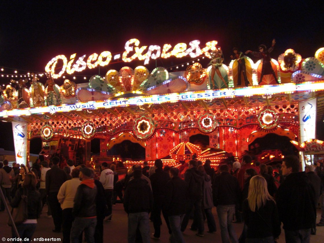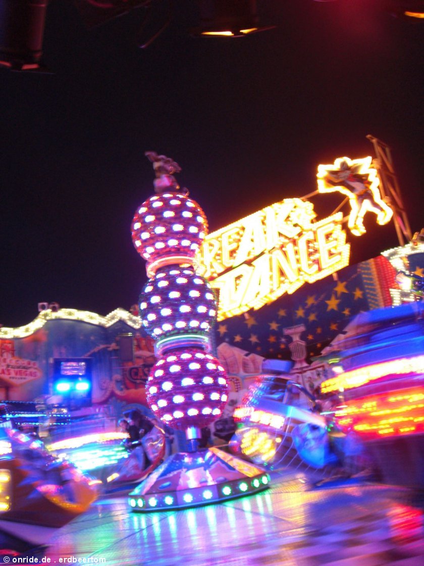 Womit wir wieder beim Schlagwort Riesenrad wären, und somit die erste Platzrunde beendet hätten bei tageslicht. Dann folgte erstmal ein längerer Aufenthalt im Bierzelt, bevor es dann wieder auf den nächtlichen Festplatz ging.