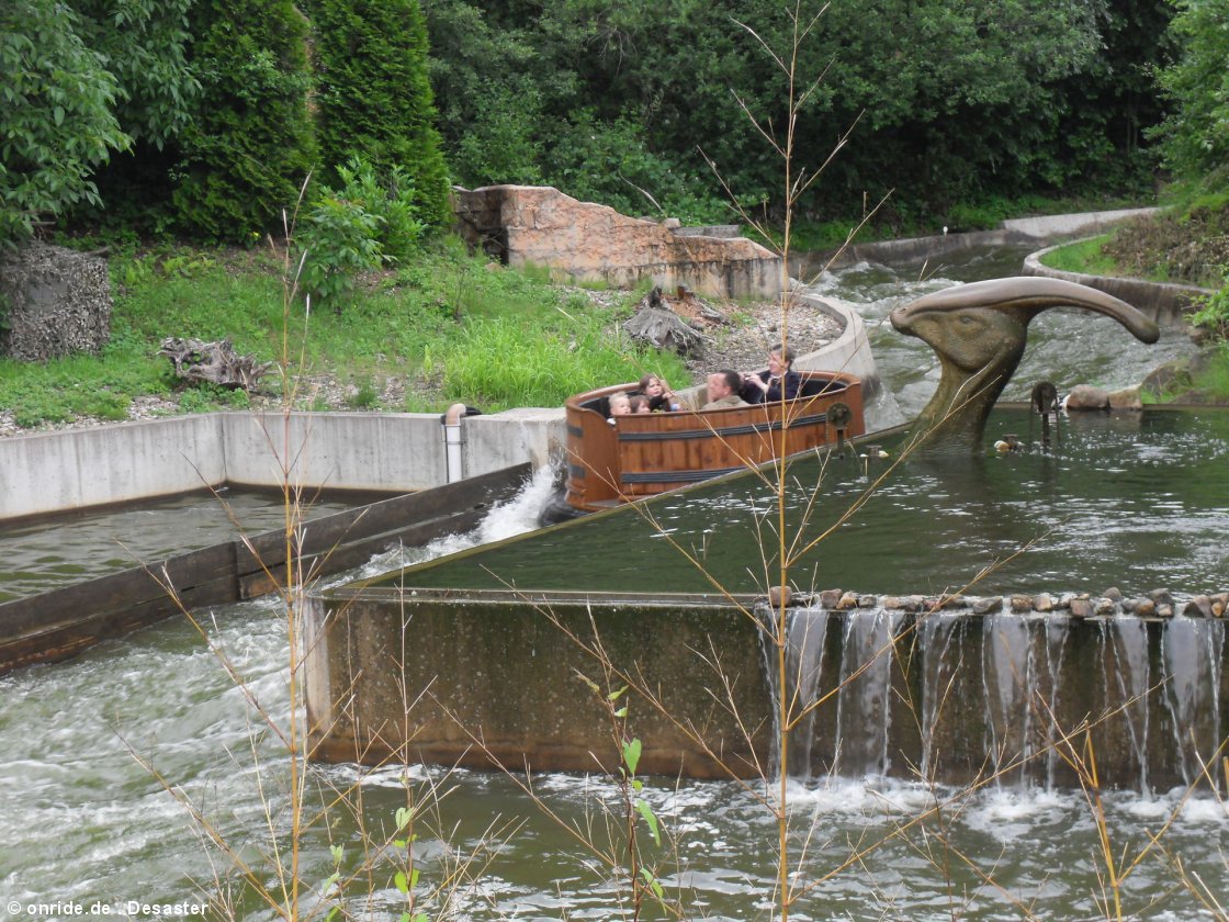 Unser nächstes Anlaufziel war dann die grandiose Raftinganlage "Reich des T-Rex". Dieser Bereich ist nach wie vor alleine schon das Eintrittsgeld wert und begeistert einfach immer wieder. Die Raftinganlage wurde so wunderbar durch eine geniale Thematisierung in Szene gesetzt, eine wahre Pracht. Große Animatronics die richtig Alarm machen, viele versteckte kleine Details, alles passt einfach wunderbar zusammen. Die Raftinganlage im Rastiland ist einfach ein wahrer Augenschmaus und im Gesamtkonzept nach wie vor meine Nummer 1. Muss man erlebt haben, muss man gesehen haben. Und man sollte sich die Zeit nehmen, den Bereich in Ruhe zu entdecken um auch wirklich alles zu sehen.