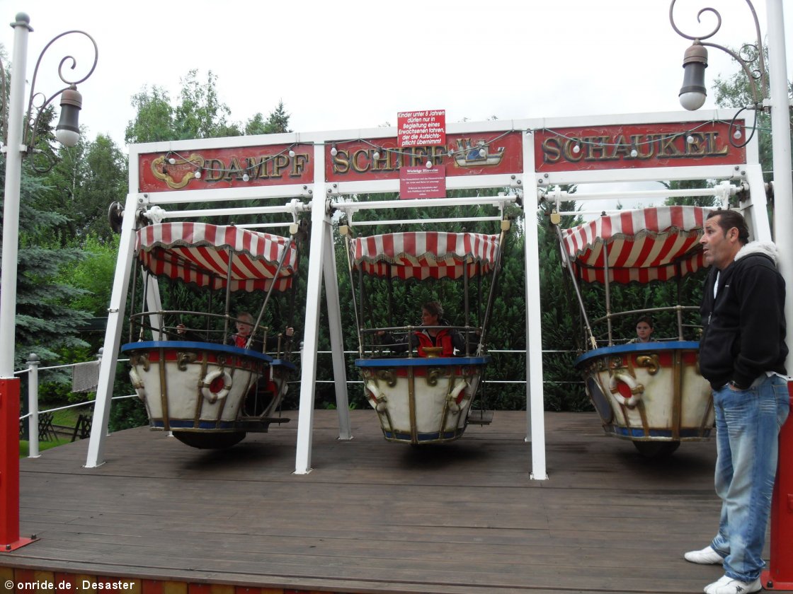 Anschließend ging es in den kleinen Piratenbereich des Parks. Dort wartet neben der Schiffschaukel "Santa Maria" auch ein kleiner, leicht versteckter Dark Ride, die "Piratenfahrt". Ich bleibe dabei, dieser kleiner schnuckelige Dark Ride ist schlichtweg genial und würde jedem anderen kleinen Park ebenso sehr gut zu Gesichte stehen. Kurze, knackige Fahrt, schön thematisiert und vor allen Dingen mit sovielen überraschenden Effekten gespickt, da lacht das Dark Ride Fan Herz. Tolles Ding nach wie vor!