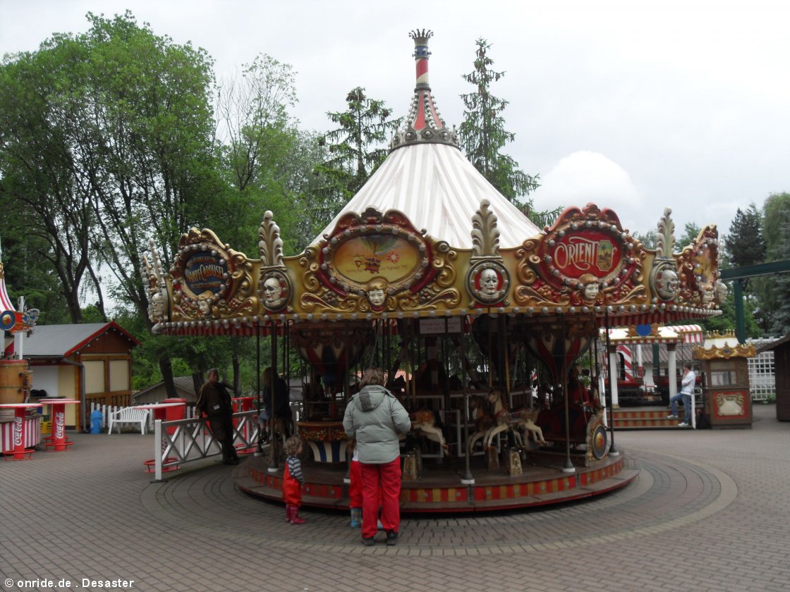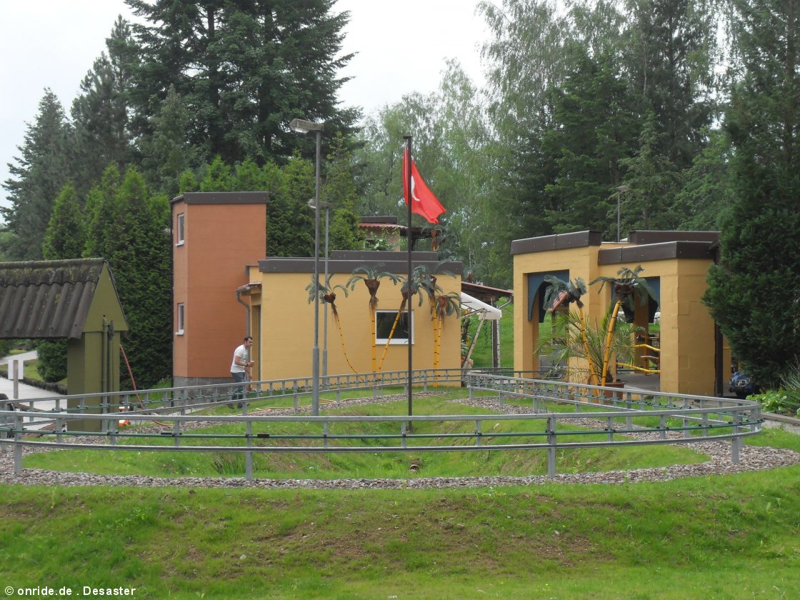 Unser nächstes Ziel war die neue Kamelreitbahn. Nette kleine Attraktion aus der man aber durchaus hätte mehr machen können, vielleicht ist das Ende der Thematisierung da aber auch noch nicht erreicht, das Ding sieht noch sehr frisch und neu aus, könnte also sein dass da vielleicht noch was passiert. So ist es im Moment nur eine elektronische Kamelreitbahn die auch nicht gerade spektakulär lang ist.