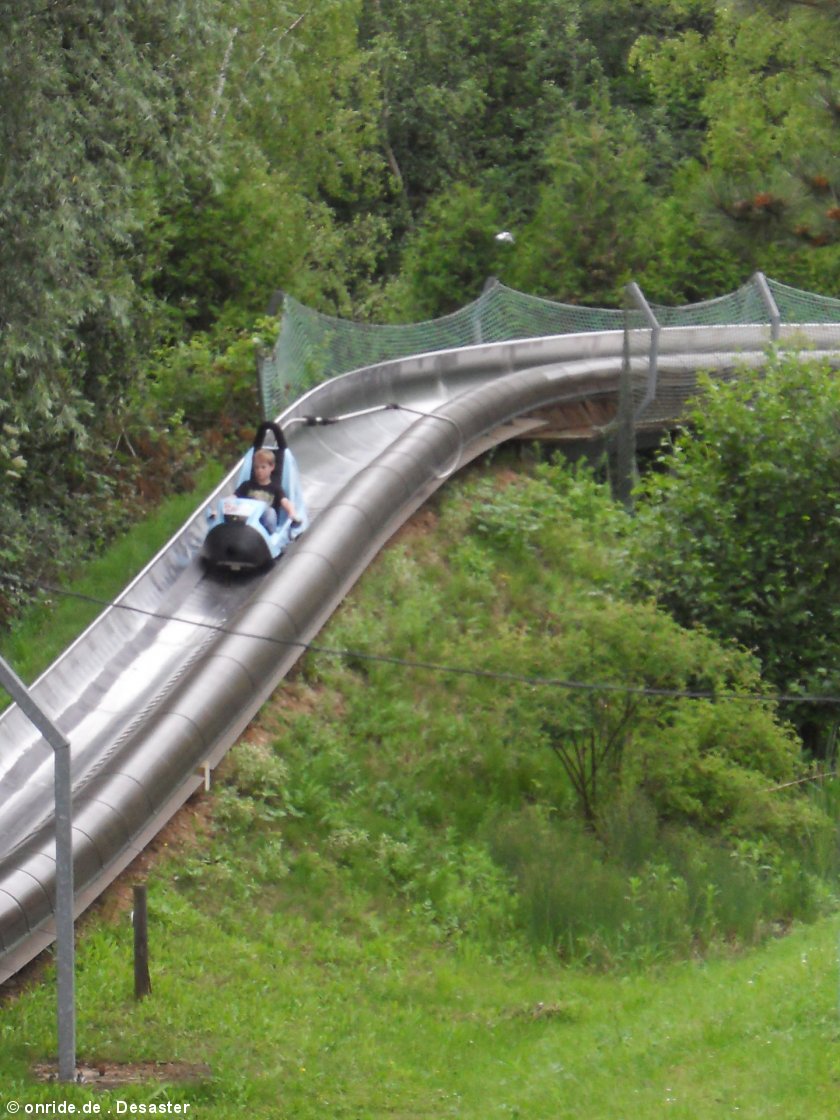 Nächstes Ziel unserer Reise war der "Blizzard". Hier gab es mit 10 Minuten Wartezeit auch die längste Anstellzeit des Tages. Gut dass es nicht mehr waren, denn dann wäre die Enttäuschung noch größer gewesen. Ich weiss nicht ob es am Wetter lag oder ob das Teil dem Familienpublikum angepasst wurde, jedenfalls fuhr die Bobkartbahn extrem gedrosselt und machte nicht wirklich Spaß.