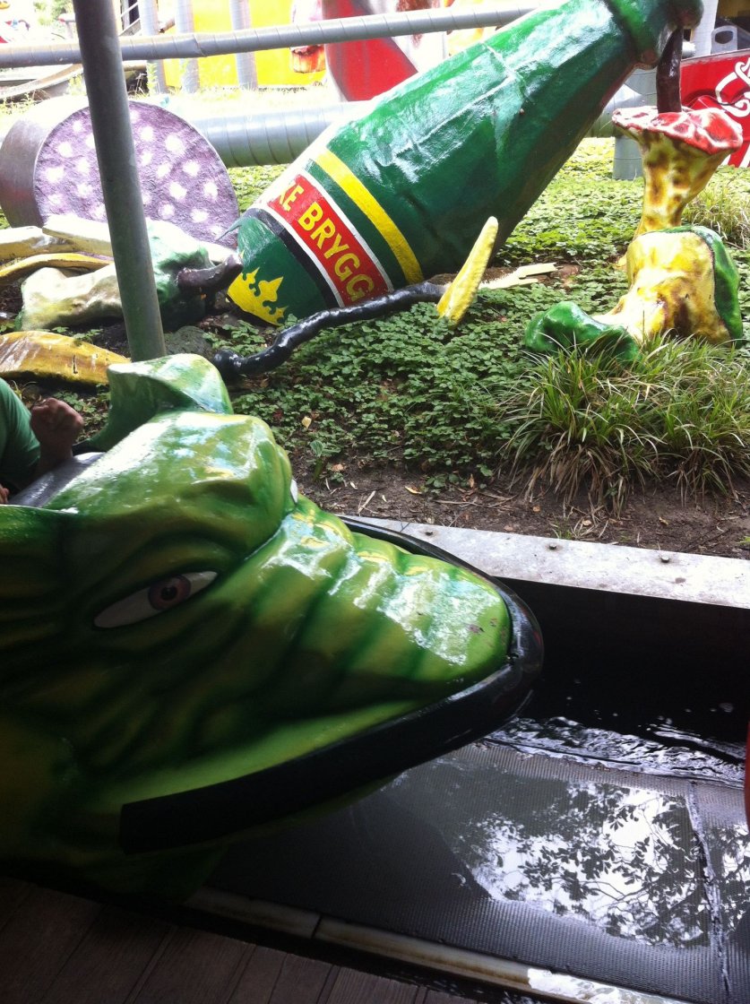 Odins verdichtete Kranplatz Tour - Der Hauptbericht Odins verdichtete Kranplatz Tour Teil 1: Hansa Park Odins verdichtete Kranplatz Tour Teil 2: BonBon-Land Odins verdichtete Kranplatz Tour Teil 3: Bakken Odins verdichtete Kranplatz Tour Teil 4: Sommerland Sjaelland Odins verdichtete Kranplatz Tour Teil 5: Tivoli Kopenhagen Odins verdichtete Kranplatz Tour Teil 6: Halmstad Äventyrsland Odins verdichtete Kranplatz Tour Teil 7: Malmö Folkets Park Odins verdichtete Kranplatz Tour Teil 8: Tosselilla Odins verdichtete Kranplatz Tour Teil 9: Strand / Geburtstag Odins verdichtete Kranplatz Tour Teil 10: Bornholm / Joboland Odins verdichtete Kranplatz Tour Teil 11:Kolmårdens Djurpark Odins verdichtete Kranplatz Tour Teil 12: Junibacken Odins verdichtete Kranplatz Tour Teil 13: Stockholm Odins verdichtete Kranplatz Tour Teil 14: Tivoli Gröna Lund Odins verdichtete Kranplatz Tour teil 15: Furuvik Odins verdichtete Kranplatz Tour teil 16: Skara Sommarland Odins verdichtete Kranplatz Tour Teil 17: Liseberg Odins verdichtete Kranplatz Tour Teil 18: TusenFryd Odins verdichtete Kranplatz Tour Teil 19: Fähre nach Dänemark Odins verdichtete Kranplatz Tour Teil 20: Rubjerg Knude Fyr Odins verdichtete Kranplatz Tour Teil 21: Fårup Sommerland Obwohl der Wecker schon gegen 7 Uhr geklingelt hat, waren wir alle ausgeschlafener als die letzten Tage. Naja, außer Marie vielleicht. Der nächste Park lag zwar nur 30 Minuten entfernt, aber in der ersten Nacht konnte ja noch keiner wissen wie lange wir brauchen, also besser zu früh als zu spät. Die Jungs schlafen anscheinend noch. Guten Morgen! Zum Glück hat Tobi den Kampf mit dem Zelt zuhause schon geübt. Schnell ging es zwar trotzdem nicht, aber immerhin hatte er einen Plan. Einmal alles raus, damit auch jeder an seine Sachen kommt… und wieder alles rein. Mit ein bisschen Übung und System alles kein Problem! Ca. 90 Minuten vor Parköffnung erreichten wir den Parkplatz vom BonBon-Land. Auf diesen Park habe ich mich vor der Tour ziemlich gefreut, soll ja ziemlich bescheuert sein hier. Und was macht man, wenn man einen Park 90 Minuten vor Öffnung erreicht? Richtig. Frühstücken. Und zwar 5 Minuten Terrinen. Kann man ja mal machen, so auf einem Parkplatz! Den beiden war es für warmes Essen wohl noch zu früh. Die Zeit verging relativ schnell und um 10 Uhr konnten wir uns alle unseren Gratis Eintritt aufgrund der Jahreskarten abholen. Die ersten Eindrücke waren in der Tat schon sehr verrückt… Unsere erste Station war Svend-Svingarm, super spaßiges Teil mit super mieser Abfertigung. Ich glaube wir saßen locker 20 Minuten drin, bevor es irgendwann mal losging. Aber hauptsache der schwingt höher als der Freefall nebenan. Nebenan stand auch direkt die erste der vier Achterbahnen des Parks. Vild Svinet bedeutet übersetzt “Wildschwein” und ist der Prototyp des Gerstlauer Eurofighters. Im Vorfeld wurde uns erzählt, dass die Bahn schlagen soll wie Sau, das kann ich allerdings überhaupt nicht bestätigen. Sie ist ziemlich kurz und nicht sonderlich spektakulär, macht aber Spaß. Die Thematisierung mit dem Wildschwein-Wettrennen haut allerdings sowieso wieder alles raus. Direkt nebenan befindet sich ein Spinning Coaster von Gerstlauer, von dem man bisher nur positives gehört hat. Leider hat Han-Katten (Kater) uns ziemlich enttäuscht, weil wir bei mehreren Fahrten so gut wie keine Drehung hinbekommen haben. Das wird aber daran liegen, dass es etwas voller war und wir nicht 2:0 fahren durften. Ich denke schon, dass die Bahn einiges drauf hat wenn man eine vernünftige Beladung erwischt. Echt schade. Am Ende vom Park dreht Viktor Vandorm seine Runden und sieht dabei absolut unpassend aus, denn das Layout vom ehemaligen Flinken Fridolin war damals auf den Panorama Park zugeschnitten. Sieht total seltsam aus, allein schon, weil die Station in der Luft rumhängt, war aber schön die Bahn mal wieder zu sehen, ist bei mir ja nun auch schon 11 Jahre her. Bei der letzten Achterbahn im Park handelt es sich um einen Kiddie Coaster von Zierer, mit der wohl skurrilsten Thematisierung. Das Zentrum der Hundeprutterutschebane (Hundefurz-Achterbahn) bildet Henry Hundeprut, eine gigantische kackende Hundefigur. Nach den Coastern stellten wir uns gespannt bei der ziemlich bunten Themenfahrt Søløven (Seelöwe) an. Hier fährt man an verschiedenen Ländern vorbei und kann unter anderem den Big Bon bestaunen! Nach einer gemütlichen Runde um den See… … warteten noch die beiden Wasserbahnen auf uns. Den Anfang machte Vandratten (Wasserratte), eine tolle Wildwasserbahn mit super Gestaltung und ein paar kleinen süßen Darkride Parts (Auch wenn wir natürlich leider kein Wort verstanden haben) Den Abschluss machte das schöne Beaver Rafting (Biber Rafting). Zum Abschluss sind wir noch in die Halle am Eingang gegangen um zu gucken was sich hier befindet. In dem ersten Teil dreht ein kleiner Märchenzug seine Runden und danach ist auf dem Parkplan ende. In Wirklichkeit ist dahinter aber eine noch viel größere Halle mit ganz vielen verschiedenen Themenwelten zum durchgehen. Hätte man einfach Schienen in die Mitte gelegt, dann hätte man einen top Darkride, aber so war auch toll. Mir hat das BonBon-Land sehr gut gefallen, ist einfach mal was vollkommen anderes im Gegensatz zu den ganzen Standart Themen, die man in jedem Park findet. Wirklich verrückt das Ganze. |