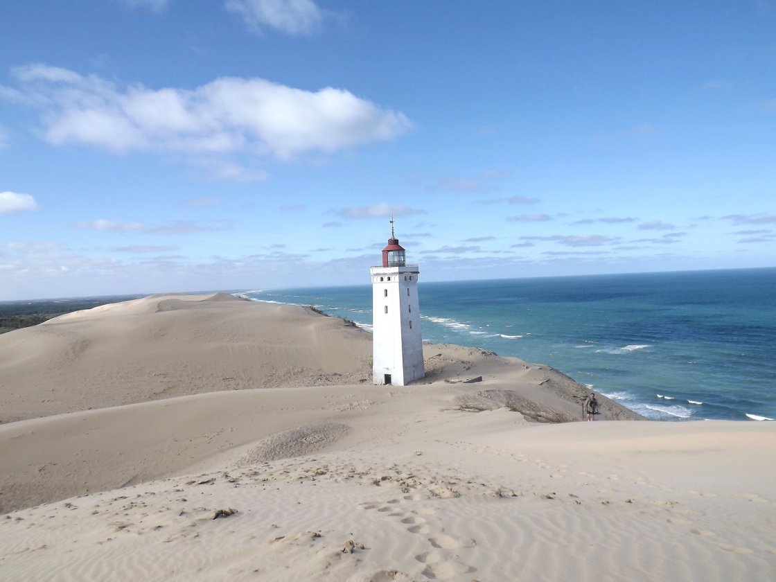 Odins verdichtete Kranplatz Tour - Der Hauptbericht Odins verdichtete Kranplatz Tour Teil 1: Hansa Park Odins verdichtete Kranplatz Tour Teil 2: BonBon-Land Odins verdichtete Kranplatz Tour Teil 3: Bakken Odins verdichtete Kranplatz Tour Teil 4: Sommerland Sjaelland Odins verdichtete Kranplatz Tour Teil 5: Tivoli Kopenhagen Odins verdichtete Kranplatz Tour Teil 6: Halmstad Äventyrsland Odins verdichtete Kranplatz Tour Teil 7: Malmö Folkets Park Odins verdichtete Kranplatz Tour Teil 8: Tosselilla Odins verdichtete Kranplatz Tour Teil 9: Strand / Geburtstag Odins verdichtete Kranplatz Tour Teil 10: Bornholm / Joboland Odins verdichtete Kranplatz Tour Teil 11:Kolmårdens Djurpark Odins verdichtete Kranplatz Tour Teil 12: Junibacken Odins verdichtete Kranplatz Tour Teil 13: Stockholm Odins verdichtete Kranplatz Tour Teil 14: Tivoli Gröna Lund Odins verdichtete Kranplatz Tour teil 15: Furuvik Odins verdichtete Kranplatz Tour teil 16: Skara Sommarland Odins verdichtet Kranplatz Tour Teil 17: Liseberg Odins verdichtete Kranplatz Tour Teil 18: TusenFryd Odins verdichtete Kranplatz Tour Teil 19: Fähre nach Dänemark Odins verdichtete Kranplatz Tour Teil 20: Rubjerg Knude Fyr Odins verdichtete Kranplatz Tour Teil 21: Fårup Sommerland Die Fähre kam schon gegen 6:30 in Frederikshavn in Dänemark an und zum nächsten Park war es echt nicht weit. Da wir mit Sicherheit nicht stundenlang vor dem Eingang warten wollten nutzten wir die Zeit für etwas Sightseeing und es hat sich absolut gelohnt. Unser Weg führte uns an die Nordsee Küste, wo Steve schon vorher öfter mit seinen Eltern Urlaub gemacht hatte. Wir stellten das Auto auf dem total verlassenen Parkplatz ab, denn um 7 Uhr morgens kommen in der Regel eher wenig Touristen. Ein enger Feldweg führt uns hin. Wohin eigentlich? Dahin! Und der Weg "dahin" ist ziemlich abenteuerlich. Irgendwann kommt man jedenfalls an den Punkt, an dem man seine Schuhe ausziehen sollte. Jetzt will ich aber mal ein paar Worte zu dem Ziel mitten in diesem Sandhaufen sagen. Die Rubjerg Knude (Erhebung) ist die Wanderdüne an der Steilküste, auf der wir hier schon rumlaufen. Im Jahr 1900 wurde an der Küste von dem Ort Rubjerg ein Leuchtturm (Fyr) eingeweiht. Die Düne war damals nur 2,3 Meter hoch. Außerdem wurden neben den 23 Meter hohen Turm noch vier weitere Gebäude, die Wärterhäuschen, gebaut. Im Laufe vieler Jahrzehnte wurde die Düne immer höher und verschiedene Bauunternehmen versuchten, den Sand wegzufahren - erfolglos. Im Jahr 1968 wurde der Leuchtturm schließlich abgeschaltet, weil die Düne inzwischen so hoch war, dass der Turm vom Meer aus nicht mehr zu sehen war. Man versuchte weiterhin die Sandwanderung zu verhindern, indem man die Dünen bepflanzte, doch auch das hat nicht funktioniert, also gab die dänische Regierung Anfang der 1990er schließlich den Kampf gegen die Düne auf und erklärte das gesamte Gebiet zum Naturschutzgebiet. Mitte des Jahrzehnts entfernte man die Dächer von zwei der Gebäude, da sie bald einstürzen würden und eventuell Touristen in Gefahr bringen könnten. Im dritten Gebäude befand sich bis 2001 noch ein Flugsandmuseum, doch in diesem Jahr sind alle drei Häuser schließlich in der Düne verschwunden. Momentan wandert die Düne nach Nordosten und ist inzwischen am Leuchtturm vorbei und von den Häusern ist nicht mehr viel übrig geblieben, allerdings sind die Ruinen wieder teilweise freigelegt. Der Leuchtturm wird vermutlich die nächsten 8-10 Jahre die Steilküste hinabstürzen. Am Parkplatz befinden sich noch diverse Infotafeln Danach haben wir noch in einem süßen Minidorf am Meer angehalten um in einem kleinen, überteuerten Dorf Supermarkt Grillfleisch zu kaufen, denn im nächsten Park gibt es Grillplätze. |