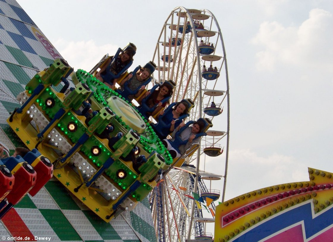 Bei wunderbarstem Frühlingswetter ging es in der letzten Woche am Familientag nach Kassel zum Frühlingsfest. Eine Veranstaltung, die in den letzten Jahren klar eine Entwicklung zum Positiven hin durchgemacht hat. In meinem ersten Besuchsjahr dort war der Platz nur gut zur Hälfte bebaut gewesen. Doch mittlerweile gelingt es schon seit mehreren Jahren, den Platz mit ansprechenden Geschäften zu füllen und zumindest am Familientag war der Platz pickepackevoll mit Kirmesbesuchern. Einziger Wehrmutstropfen an diesem schönen Kirmesnachmittag war, dass die Hauptattraktion – der Gladiator – leider außer Betrieb war. Sehr schade! Allerdings hatte das Frühlingsfest trotzdem noch genug zu bieten, wenn auch sehr viel Kasseler Standard dabei war. So nahmen Rupperts Take Off, der Scirocco, Niers Starlight Express und die beiden Scooter ihre Stammplätze ein. Auch die Frisbee von Ruppert gehört hier mittlerweile zum festen Inventar. Scheeles Top Spin (für mich immer noch das schönste Exemplar in Deutschland) gab ein erneutes Heimgastspiel. Weiterhin wurden noch Katz & Maus, U 3000, Domino und das Liberty Wheel von Gormanns geboten. Gladiator - Kriek So sah er leider den ganzen Tag über aus. Domino - Michel Mais Man vs. der Clown Frisbee - Ruppert Autoscooter - Kalbfleisch U 3000 - Ahrend Voll war's! Starlight - Nier Katz & Maus - Klünder Mampf! Fantasy Drive - Heinen Scirocco - Schellberg Top Spin - Scheele Liberty Wheel - Gormanns Autoscooter - Schellberg Take Off - Ruppert |