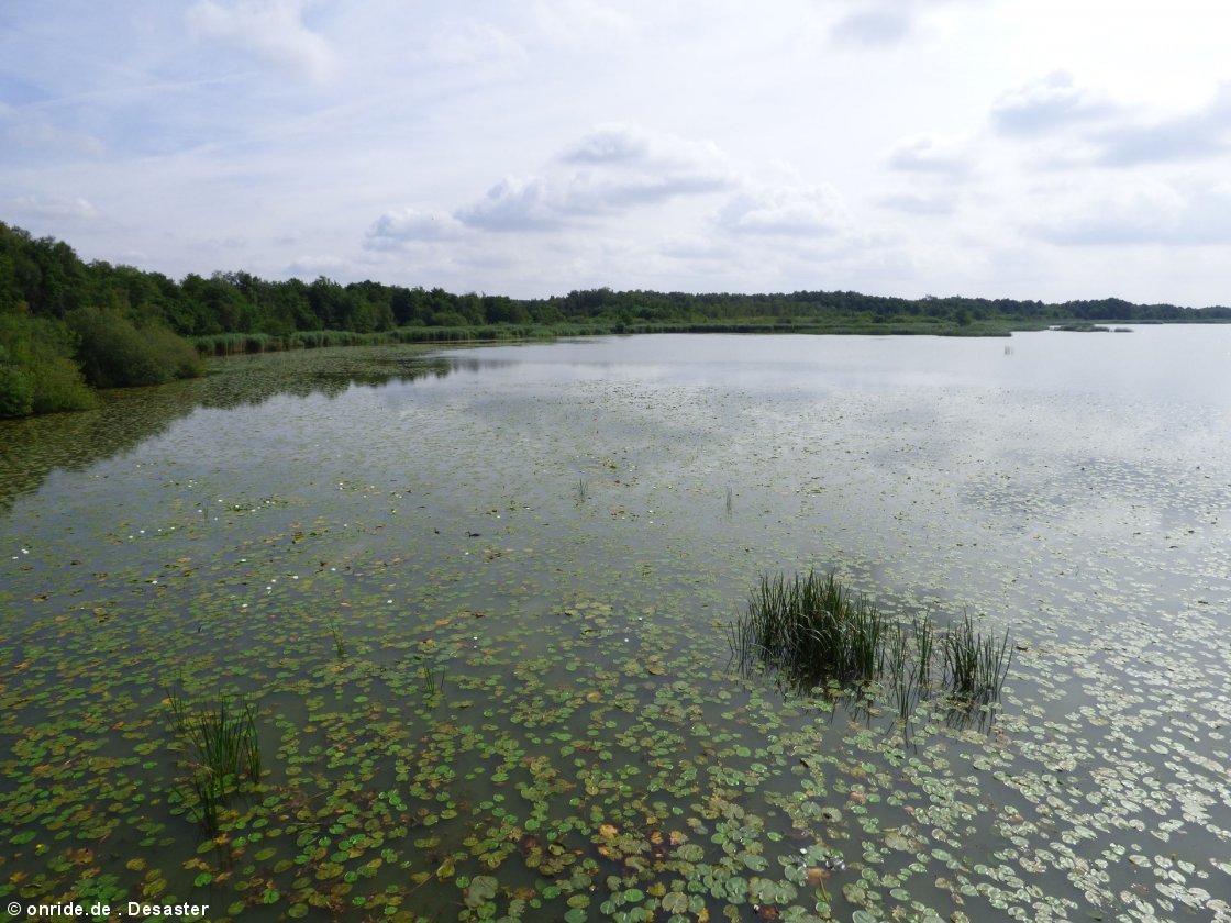 Weitere Berichte dieser Tour: Endlich Urlaub 2016, Teil 1: Sommer, Sonne, Strandhotel Endlich Urlaub 2016, Teil 2: Es sind nur 50 Meter bis zum Meer: Mardorf am Steinhuder Meer Endlich Urlaub 2016, Teil 3: Jurassic Park in Niedersachsen-der Dino Park in Münchehagen Wenn man Urlaub am Steinhuder Meer macht, dann wird man in erster Linie immer wieder mit der wunderschönen Natur konfrontiert. Hier kann man wirklich allerorts die Seele baumeln lassen und einfach nur durchs Grün und am Meer entlang schlendern. Entschleunigung ist das Stichwort. Man hat das Gefühl, hier ist alles etwas langsamer, leichter, entspannter. Bei unseren Spaziergängen rund um das Steinhuder Meer trafen wir an einem Tag auch auf das Tote Moor, welches wir von Mardorf aus betraten. Das Tote Moor hat eine Größe von ca. 33 Quadratkilometern. Das Moor im Gebiet der Hannoverschen Moorgeest grenzt an Neustadt am Rübenberge, Eilvese und das Steinhuder Meer an. Es handelt sich um ein teilweise abgetorftes Hochmoor mit kleineren Niedermoorbereichen. Auf dem Weg zur Moorstraße Über solche Stege kann man das tote Moor bewandern Die Moorstraße durch das tote Moor entstand im Jahr 1968. Bis zu diesem Zeitpunkt war es nur durch große Umwege möglich, das Steinhuder Meer bei Mardorf zu erreichen. Im Jahr 1970 wurde der über 5 km lange Uferweg weiter ausgebaut. Ich will euch jetzt nicht mit der langen Geschichte des Toten Moores langweilen, die allerdings sehr interessant ist. Wer will, kann sich ja hier mal einlesen. Das Tote Moor eignet sich auf jeden Fall für ausgedehnte Spaziergänge in der Natur, da die angelegten Wege auch direkt am Steinhuder Meer mit Aussichtsplattformen vorbeiführen. Es gibt jede Menge Tiere zu beobachten und man kann einfach nur wunderbar relaxen. Falls jemand vergessen hat wo wir Urlaub gemacht haben Unterwegs in wunderbarer Natur Viele Wege gibt es zu erkunden Einer von vielen Aussichtspunkten auf dem Weg Weiter unterrwegs auf der Moorstraße Das Wetter war natürlich nicht ganz optimal für diesen Ausflug. Es war einfach ein paar Grad zu heiß, denn auch bei der Erkundung der Moorstraße kletterten die Temperaturen wieder jenseits der 30 Grad. Für diesen Trip wären ein paar Grad weniger sicherlich schöner gewesen, da es gerade auf den Stegen im Moorbereich doch zu extremen Waschküchenverhältnissen kam. Dennoch haben wir es nicht bereut, es war ein Klasse Ausflug in das Tote Moor von Mardorf. Nach dieser Entschleunigung, der Ruhe und dem Wandern in der Natur sollte am gleichen Tag dann noch das krasse Gegenteil folgen, der Besuch in Steinhude, der absoluten Touristenhochburg am Steinhuder Meer. Aber davon werde ich im nächsten Teil berichten. **FORTSETZUNG FOLGT** |
