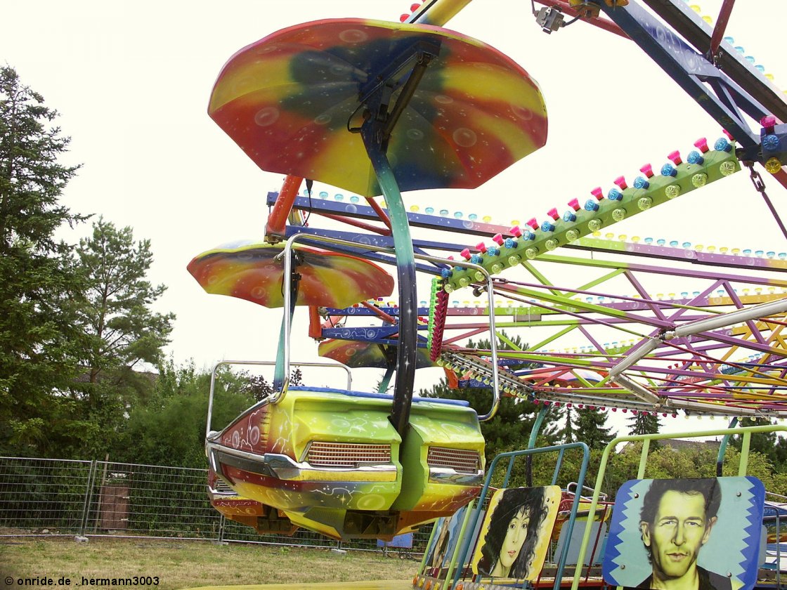 Hersteller: Reverchon (F) Typ: Twister Baujahr: 1974 Betreiber: Nickel, Romano (? (D)) ab 2014 ehemaliger Betreiber: Laux, Paul (Wiesbaden) ab 1974 bis ? ehemaliger Betreiber: Heinerici, Holger (? Raum Berlin) ehemaliger Betreiber: Nickel, Claudia und Karl (55218 Ingelheim) ab 2006 (Premiere Erdbeerfest in Erbach) bis 2009 ehemaliger Betreiber: Kramer, Holger (Wiesbaden (D)) ab 2010 - 2012 ehemaliger Betreiber: Bockermann, Horst (Guntersblum (D)) ab 2012 bis 04/2014 Quelle: K&PR 166, S. 10 (Premiere unter Kramer) K&PR 191, S. 4 (Übernahme durck Bockermann Ride-Index: Reiseland: Deutschland Standorte 2011 Wiesbaden - Frühlingsfest Standorte 2010 Oppenheim - Wäldcheskerb Standorte 2007 Mainz-Gonsenheim - Fastnachtskirmes Mainz-Laubenheim - Rebblütenfest Standorte 2006 Michelstadt - Bienenmarkt Standorte 2005 Eltville-Erbach - Erdbeerfest Auf dem Michelstädter Bienenmarkt: |
