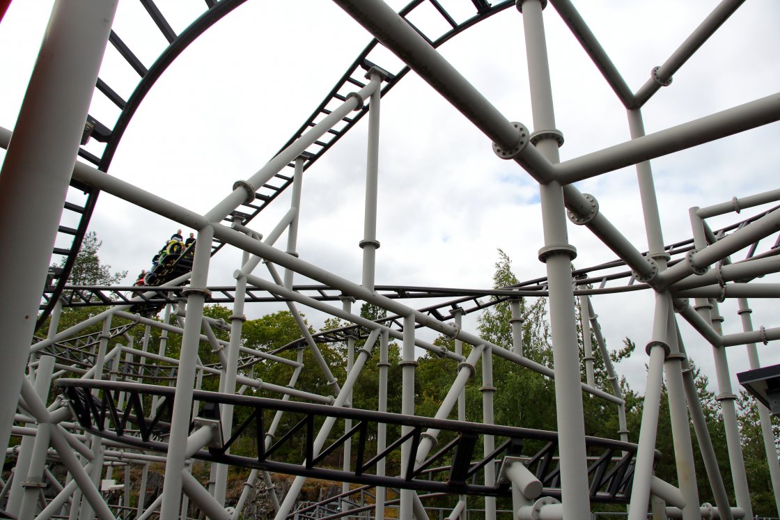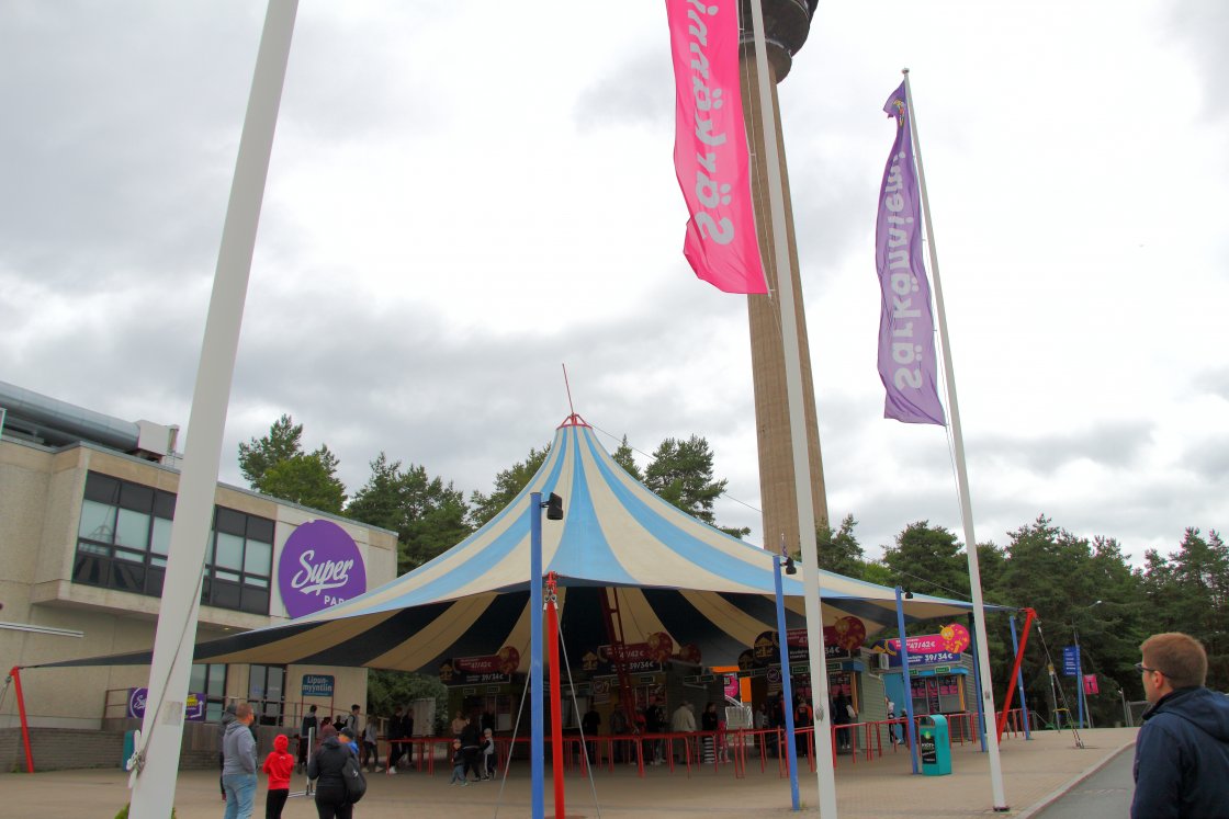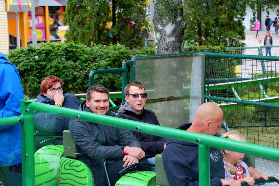 Hei Suomi! Tag 1+2: [Linnanmäki] Taiga in the air! Tag 3: [Särkänniemi] Spotted: Zwischen den Seen in Tampere Tag 4: [Power Park] Coming around to see the North Früher Samstagmorgen. Der Wecker klingelt. Aber nicht meiner, wach war ich aber trotzdem schon vor lauter Vorfreude. Nach zwei kurzen Nächten in Helsinki (nach der letzten Taiga-Fahrt ging es für mich in der Nacht für etwas Sightseeing in die Stadt) heißt es das Hotelzimmer räumen. Nach durchdachter Planung haben wir uns schon für den heutigen Abschnitt für einen Mietwagen entschieden, den Malte in der Innenstadt abholte und uns anschließend im Hotel aufgabelte. Helsinki verabschieden musste ich aber noch nicht, da wir den Mietwagen am letzten Tag zurück gebracht haben. So ging es leicht verschlafen und mit unseren beiden Lieblingsradiosendern auf dem Ohr über die Autobahn nach Tampere. Am Abreisetag bin ich gemeinsam mit Malte auf eine kleine Sightseeingtour gegangen. Ich war auf der Suche nach einer Post, um Postkarten abzuschicken, da in Linnanmäki die Briefmarken ausverkauft waren. Aktuell gleicht die Stadt großteils einer großen Baustelle, da an einer Straßenbahn gebaut wird. 2021 werden dann voraussichtlich die ersten Züge rollen. Ansonsten ist die Stadt aber recht hübsch. Eine künftige Haltestelle in der Innenstadt. Da unser Airbnb erst am Nachmittag bezugsfertig war und wir den Besitzer nicht spät am Abend zum Haus bitten wollten, parkten wir morgens auf dem recht teuren Parkplatz vor dem Freizeitpark, um dann zur Mittagszeit den sehr wolkenverhangenen Park kurzzeitig zu verlassen. Ich machte mich jedoch direkt nach dem Ausräumen des Autos per Fuß wieder auf den kurzen Rückweg, die anderen folgten später per E-Roller, die hier immer mal wieder in der Gegend herumstanden. Und siehe da, der recht triste Park wirkte bei Sonnenschein gleich viel einladender. Aber beginnen wir von vorne auf der Halbinsel namens Särkänniemi. Ich finde das Logo mit dem eingebauten Turm sehr schick! Hier die schöne Parkvorstellung von Julian. Am zum Glück noch recht leeren Kassenbereich lösten wir unsere vorab gekauften Eintrittskarten ein (online können ein paar Euros gespart werden). Kurz nach 11 Uhr am Morgen des Samstags, 3. August, ging es durch den 2001 errichteten Eingangsbereich. Während den Öffnungszeiten kann der Park kostenlos betreten werden. Die einzelnen Fahrtickets sind aber recht teuer. Uns zog es beim doch recht kühlen Wetter erstmal in das Gebäude mit Aussichtsturm, den einige um diese Uhrzeit schon hinauffuhren, Planetarium und ... ... dem Aquarium, das wir uns sogleich anschauten. Um die Uhrzeit (die Fahrgeschäfte öffneten erst um 12) war hier natürlich relativ viel los. V.a. das Untergeschoss fand ich recht hübsch gemacht. Interessant waren auch die oben offenen Terrarien. Leider waren die Informationstafeln nur auf Finnisch, weswegen ich mich dort auch unabhängig vom Freizeitpark nicht lange aufgehalten hätte. Die 15 Minuten am Morgen haben locker gereicht. Anschließend unternahmen wir eine kurze Fotorunde durch den Parkteil, der sich direkt hinter dem Fernsehturm befindet. Dort ist auch diese Straba zu finden. Ein Kunstprojekt von Rauni Liukko. Eine Straßenbahn, die bis 1971 in Helsinki unterwegs war und dort 1973 als Umweltprojekt ausgestellt wurde. Heute findet es sich hier in Tampere, wo, wie vorhin schon gezeigt, auch bald eine Tram unterwegs sein wird. Nach ein paar Fotos machten wir uns dann aber flott auf den Weg in den westlichen Parkteil, zu dem es einen steilen Hügel hoch geht. Zusammen mit dem Aquarium und dem Planetarium (1969) ist dies der älteste Teil des heute im Stadtbesitz befindlichen Parks: Der Kinderzoo Doghill Fairytale Farm, die wie das Aquarium schon um 11 öffnete. Für mich der eindeutig schönste Bereich des Parks. Die anderen gönnten sich im hier rechts liegenden Café einen Kaffee, während ich auf Erkundungstour ging. Eine kleine Bühne, ... ... eine gut eingehauste Spieleburg mit Bällebad für Kinder, ... ... ein Kräutergarten und ... ... viele Tiere. Wendy-Fans dürften hier glücklich werden. Ponyreiten ist auch möglich. Die Kaffeetrinker haben ihren Koffein-Level inzwischen angehoben und wir verließen gemeinsam die Farm. Ein wirklich großer Kontrast zum restlichen Park. Wir liefen anschließend den Berg hinunter, ... ... um die Höhenmeter als erste Gäste des Tages pünktlich zur Öffnung wieder per Treppe in der als Parkhaus gestalteten Station der ... ... Half Pipe zurückzulegen. Ich habe mich richtig auf diese Bahn gefreut. Interessant ist, dass die Stahlkonstruktion unter den Sitzen auf den hier zu sehenden Sitzen weiter nach außen reicht, als bei jenen auf der nicht sichtbaren Seite. Dadurch haben sich die Sitze schon bei der Testfahrt ein wenig gedreht. Wir haben unser Gewicht dann aber wohl so verteilt, dass wir uns nicht sonderlich gedreht haben. Gut für mich war die Drehung aber genau ausreichend, da ich so immer mit Blick nach oben die Abfahrt herunterfahren konnte. Ich hatte es schon in anderen Berichten angesprochen: Auf dem Rücken liegend so herunterzufallen ist sehr spaßig, v.a. wenn ich die Beine und Arme durch die freie Position weit von mir wegstrecken kann und der Körper langsam vom Bügel zurück in die Horizontale gezogen wird. Wäre ich gerne später nochmal gefahren, jedoch war mir der Weg dorthin zu weit, der Weg von Aus- zu Eingang noch viel weiter und bei der Kapazität wollte ich auch nicht wissen, wie hoch die Wartezeit ist. Anschließend machten wir uns auf den Weg quer durch den Park, den wir entgegen dem Uhrzeigersinn durchgingen. Am grauen Wirbel gingen wir zunächst aber vorbei, da dieser unter den Achterbahnen die höchste Kapazität des Parks besitzt. Auch an diesem mitten im Park liegenden Parkteil mit den ersten Kinderfahrattraktionen zog es uns vorbei. Die Neuheit dieses Jahres hatte schon eine recht lange Warteschlange, weswegen wir zuerst zur dahinter befindlichen Achterbahn gegangen sind und vo