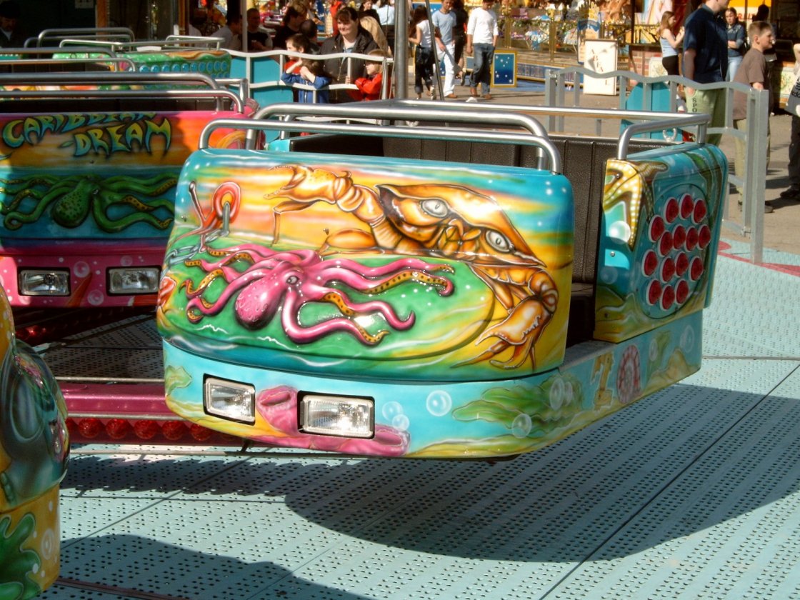 Was macht man mit einem Kapazitätsmonster, wenn man aktuell keine Kapazitäten mehr benötigt? Downsizing greift halt auch in der Schaustellerbranche. So sieht das Karussell voller aus, mehr Leute füllen sich angespornt auch mal mitzufahren und die Kasse klingelt also auch wieder. |